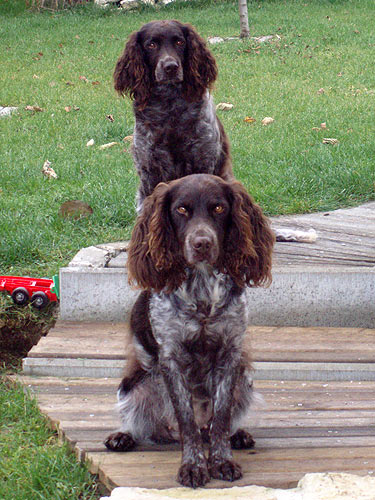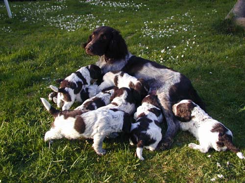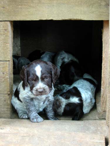 Die erwachsenen Hunde werden im Haus mit Familienanschluß gehalten. Zur kurzen sicheren Unterbringung sind sie an den Zwinger gewöhnt. Die Welpen werden im Haus geworfen und nachts in der Wurfkiste untergebracht. Tagsüber steht Ihnen ständig ein großer Garten und eine Hütte zur Verfügung. Nahe gelegene Gewässer, die vorhandene Waldrandnähe und der Umgang mit Kindern gewährleisten eine optimale Prägung schon im frühen Welpenalter.